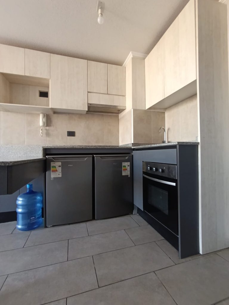Arriendo moderno y bonito departamento. La entrada cuenta con clóset tipo vestidor y otro para conexión a lavadora. Cocina americana equipada con refrigerador y freezer empotrado, comedor de diario con excelente distribución. Living comedor con salida hacia la terraza vista Oriente, despejado.
